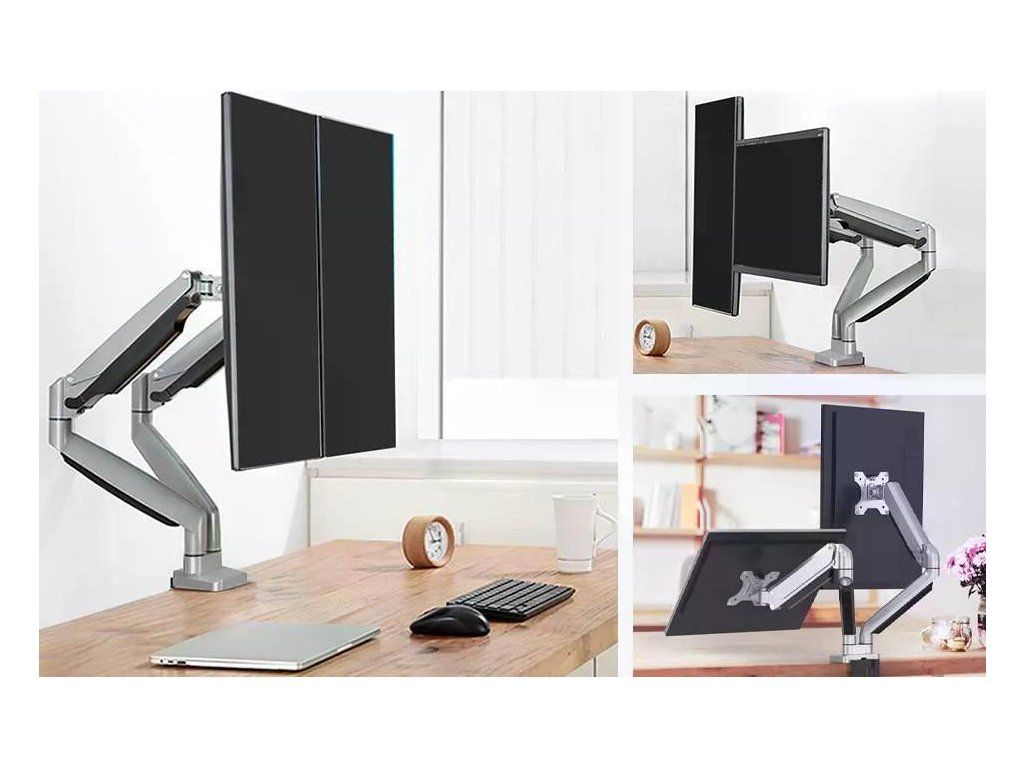 Držák pro 2 monitory na pracovní stůl-šedý